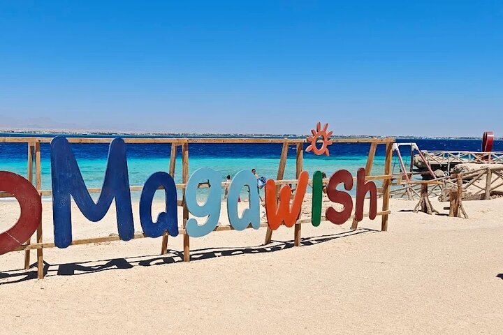Votre premier arrêt pendant le bateau rapide privé vers Magawish et l'île de Hula Hula depuis Hurghada est l'île de Magawish. Connue pour ses plages de sable doux et ses eaux turquoise peu profondes, Magawish offre environ 1,5 heure de temps libre. Vous pouvez nager, prendre un bain de soleil, vous détendre sur la plage ou simplement profiter de l'atmosphère paisible de l'île.