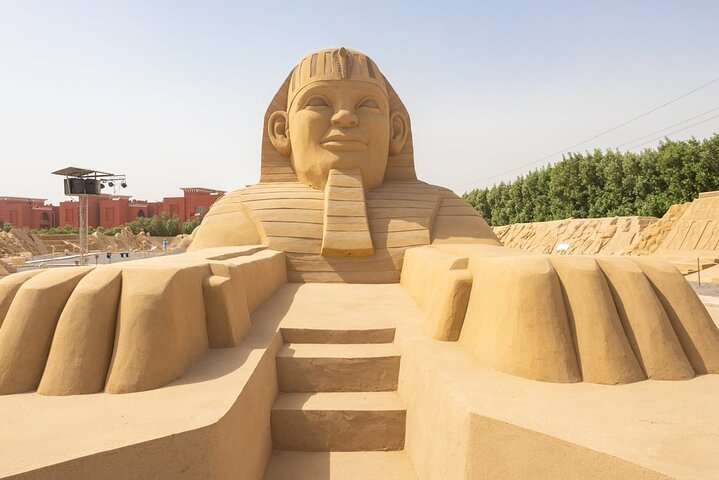 Avec transferts privés à l'hôtel La visite commence en douceur avec une prise en charge à l'hôtel et un trajet confortable jusqu'à Sand City sur Safaga Road. Une fois sur place, explorez l'exposition à votre rythme et admirez les œuvres d'art en sable inspirées par des sites célèbres, des figures historiques et des personnages mythiques, toutes soigneusement sculptées dans le sable avec une précision surprenante.