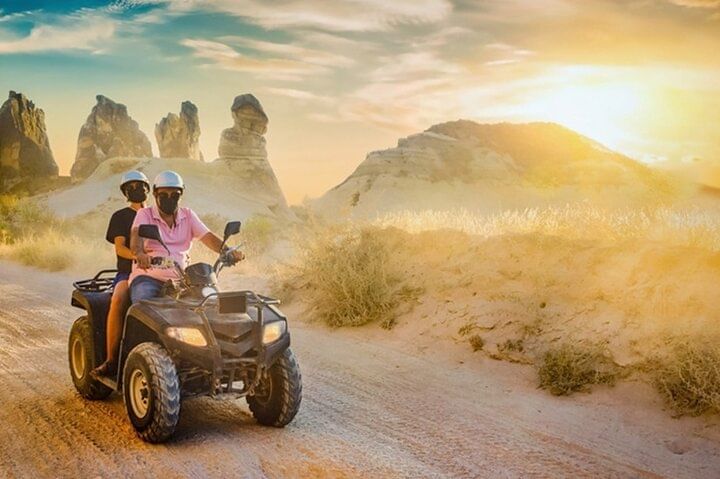 Obtain instruction from a guide on how to ride a quad bike. After that, ride a quad bike from Hurghada out into the desert to a local Bedouin town, where you can sample some traditional Bedouin tea and learn more about the culture. enjoy optional camel ride through the desert!