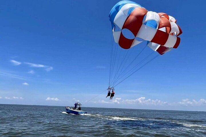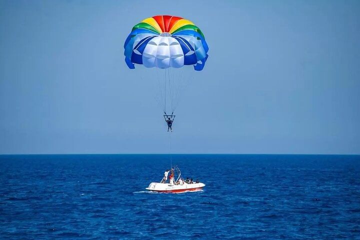 Experience the thrill of parasailing in Sharm El Sheikh with our exciting adventure package, including convenient hotel transfers. Soar high above the Red Sea, enjoying breathtaking views of the coastline and crystal-clear waters. Feel the adrenaline rush as you glide through the sky, guided by experienced instructors for a safe and unforgettable adventure. After your flight, relax and reminisce about your exhilarating experience during the comfortable transfer back to your hotel.